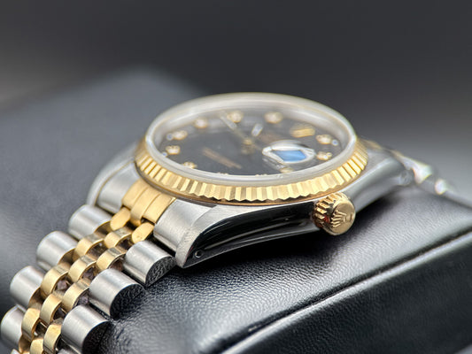 Rolex Datejust 36mm 16233 Black Diamond Dial Jubilee Automatic Watch - 1989
