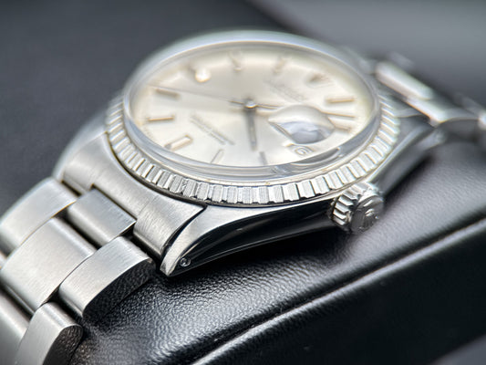 Rolex Datejust 36mm 1603 Silver Dial Engine Turned Bezel Automatic Watch