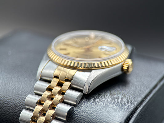 Rolex Datejust 36mm 16233 Champagne Dial Fluted Bezel Jubilee Automatic Watch