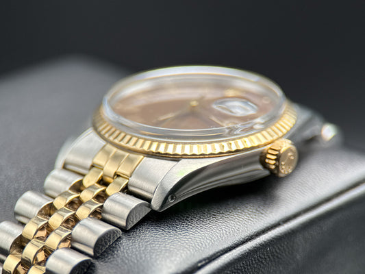 Rolex Datejust 36mm 16013 Brown Buckley Roman Dial Fluted Jubilee Watch - 1983